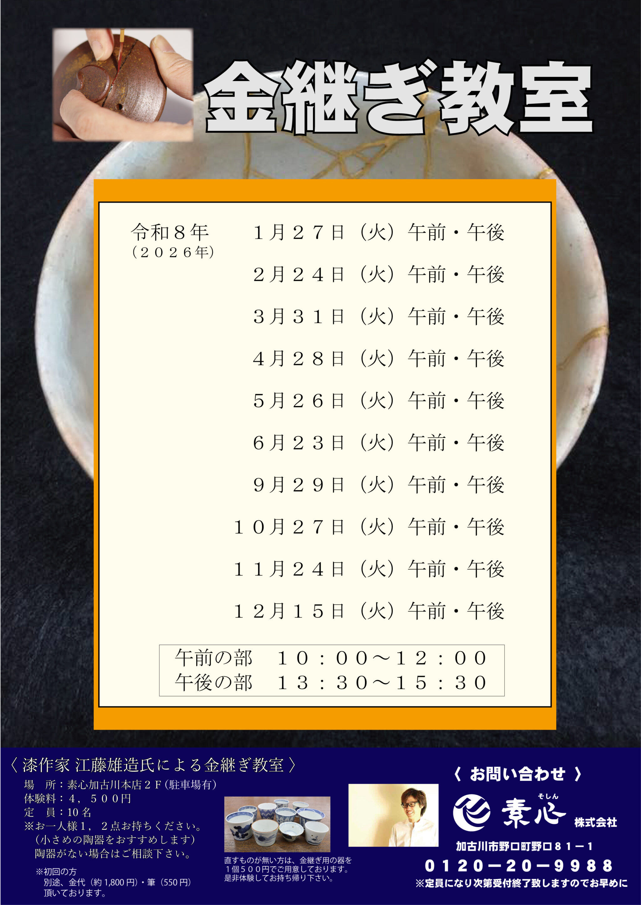 4月28日の金継ぎ教室から体験料を改定させていただきますので