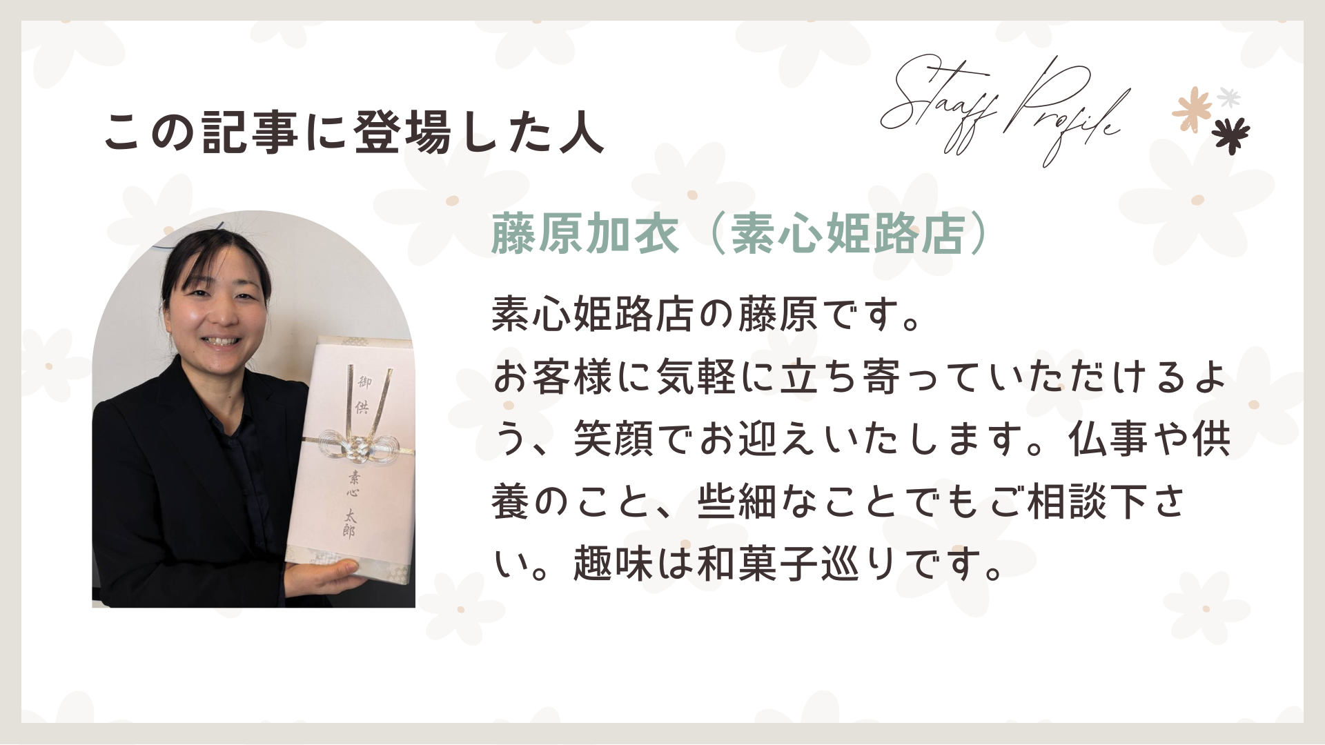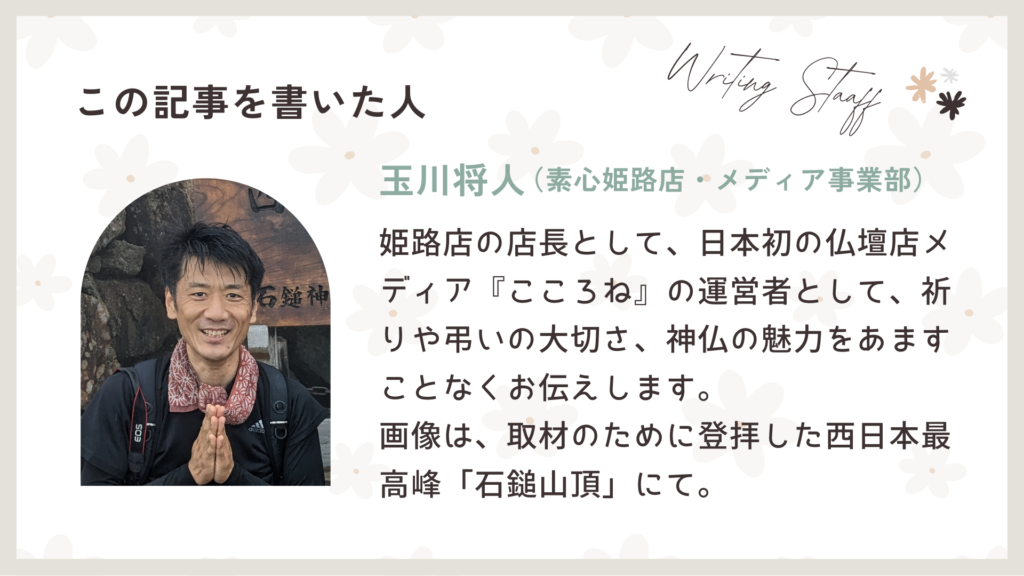 こんにちは。仏壇墓石の素心・姫路店の藤原です。