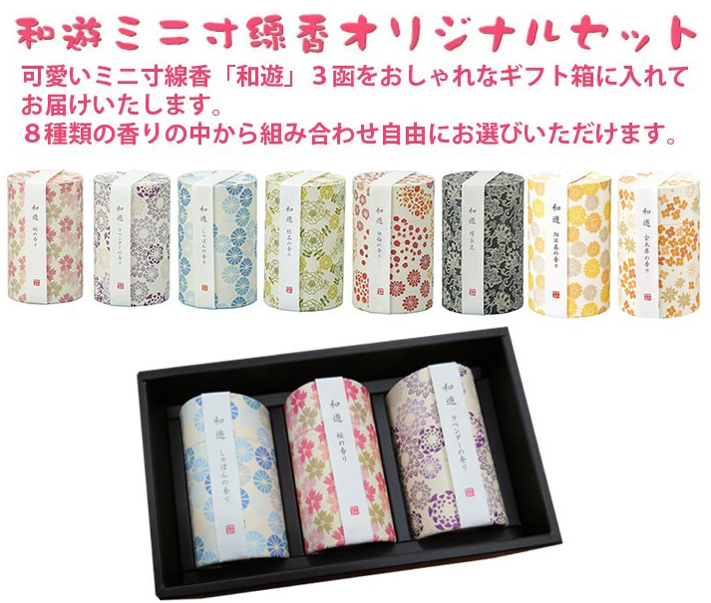 『和遊』シリーズは、桜、白梅、ラベンダー、しゃぼん、向日葵、金木犀などがラインナップされていて、お好きなものを箱詰めしてお供えできるんです。