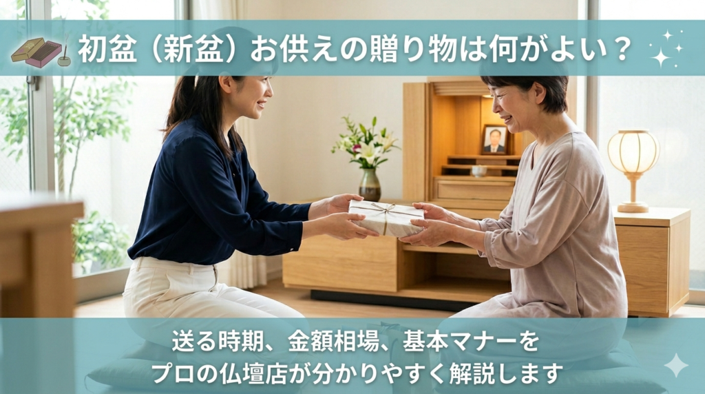 初盆(新盆)お供えの贈り物は何がよい?送る時期、金額相場、基本マナーをプロの仏壇店が分かりやすく解説します