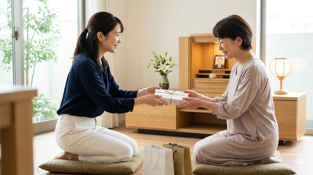 そして、実際にお邪魔した際には、「お仏壇にお供えさせていただきます」と一言添えて、おうちの方にお渡ししましょう。