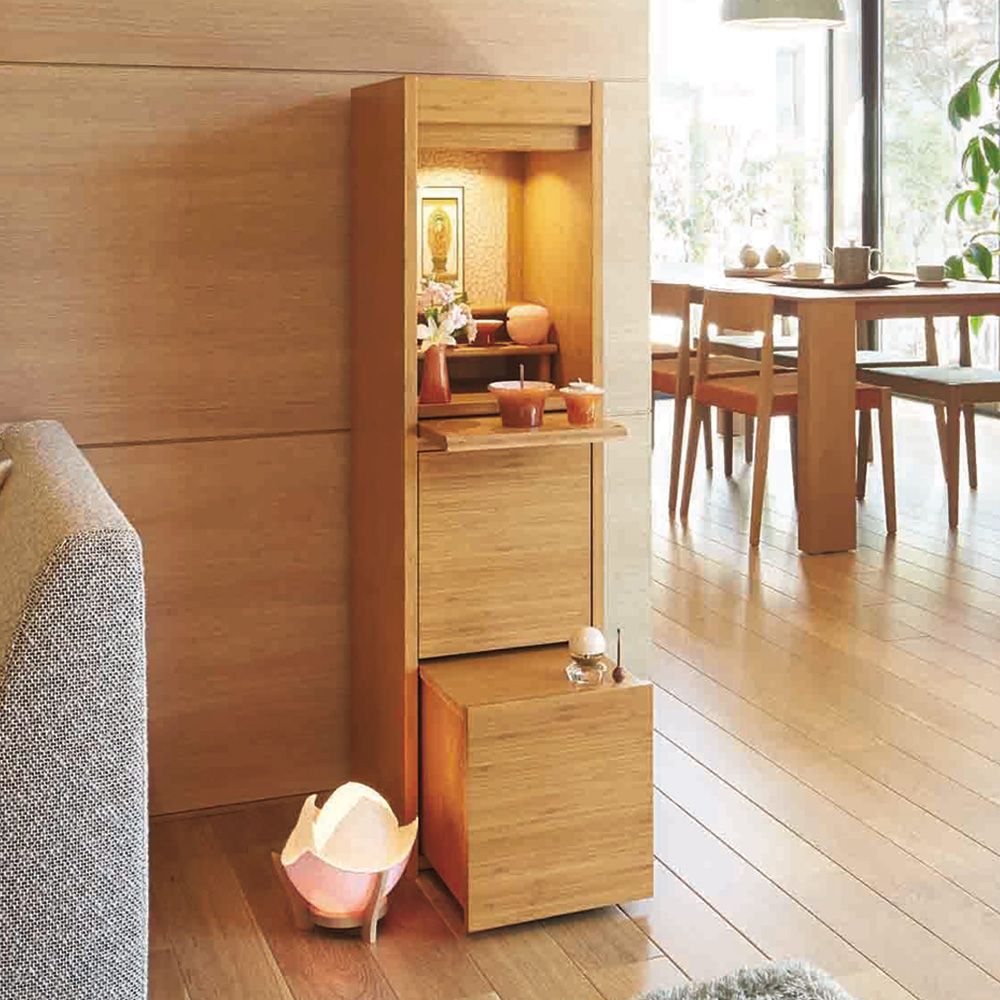 現代仏壇アッサム 400,000円 (税別) (全体)高さ120cm × 幅32cm × 奥行35cm(重さ:約27kg) (経机のみ)高さ32cm × 幅27.5cm × 奥行30cm(引き出し時) 芯材 竹集成材 強化和紙 和紙 塗装 ウレタン塗装 原産国 日本製 « 前へ一覧へ 次へ » その他の家具調 家具調 唐木仏壇 金仏壇 手元供養 仏壇一覧 ライフ 離宮 パッサート モンド